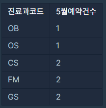 order by count(mcdp_cd),mcdp_cd; --진료과별 예약한 환자 수를 기준 / 예약한 환자 수가 같다면 진료과 코드를 기준 오름차순.