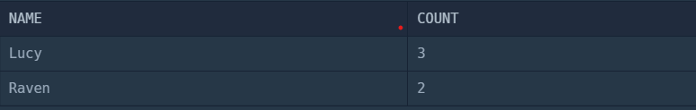 SELECT NAME, count(name) as COUNT