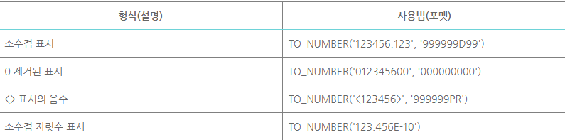 ※ TO_NUMBER - 문자나 다른 유형의 숫자를 NUMBER 형으로 변환.
